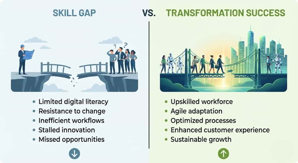 Digital transformation initiatives often fail due to skill gaps rather than technology limitations.